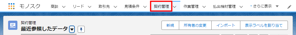 2. 「契約管理」の「最近参照したデータ」画面が表示されます。