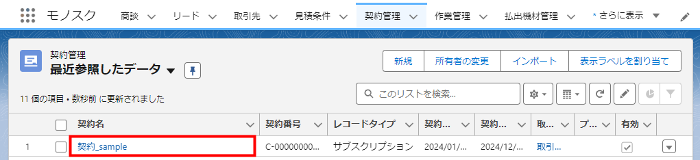 ここでは例として、[契約_sample]リンクをクリックします。